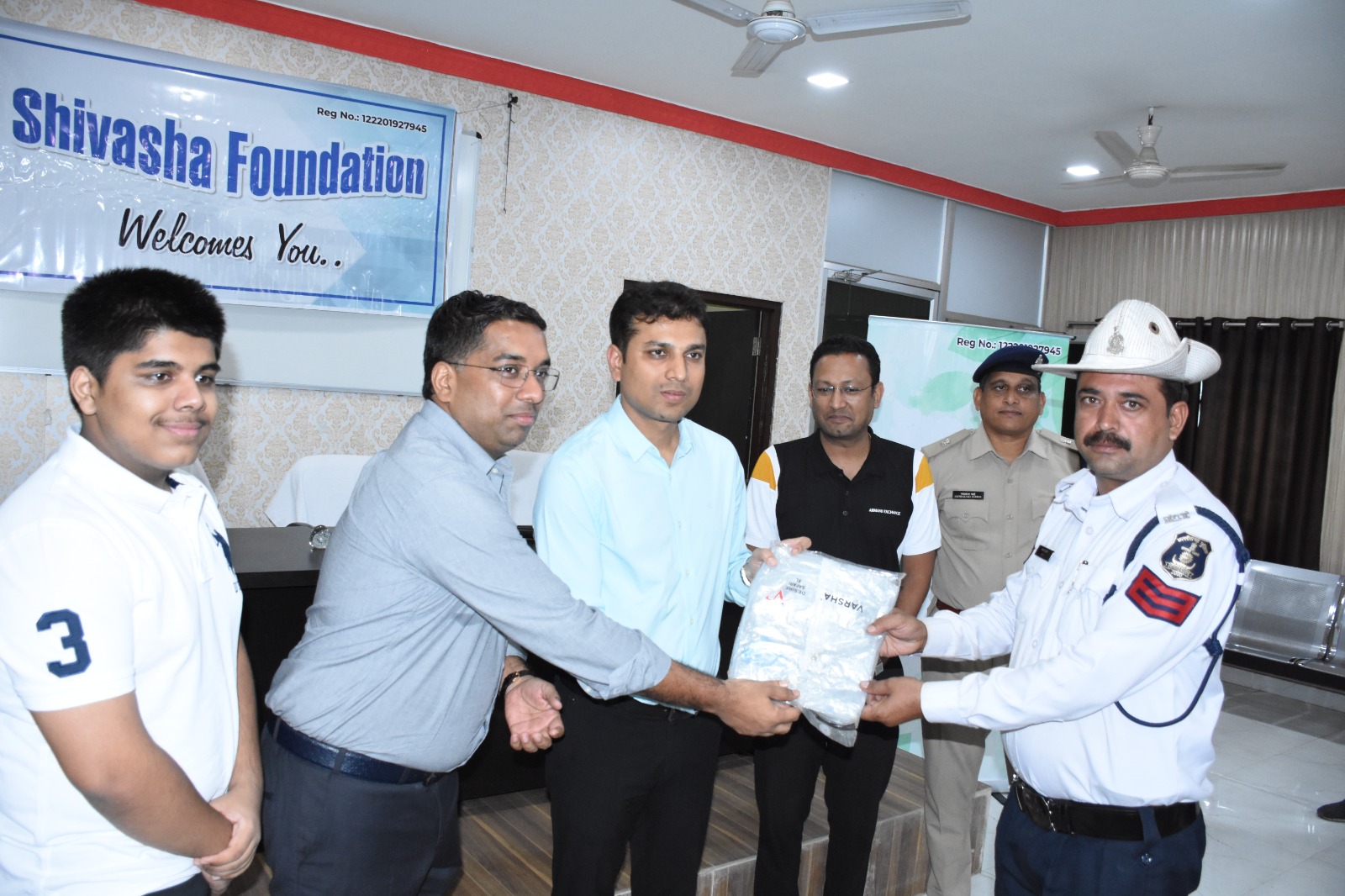 रायपुर:  बरसात के मौसम में शहर के चौक चौराहों पर यातायात संचालन हेतु मुस्तैद ट्रैफिक जवानों के सहायतार्थ शिवआशा फाउंडेशन रायपुर द्वारा यातायात रायपुर को 310 नग बरसाती (रेनकोट) प्रदान किया गया जिसे वरिष्ठ पुलिस अधीक्षक जिला रायपुर प्रशांत कुमार अग्रवाल एवम् शिवआशा फाउंडेशन के अनूप अग्रवाल और विकास अग्रवाल के हाथों यातायात पुलिस के अधिकारी कर्मचारियों को आबंटित किया गया।