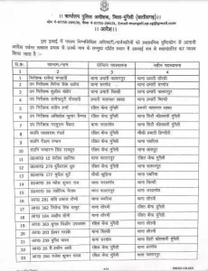 मुंगेली। पुलिस विभाग में निरीक्षक, उप निरीक्षक और सहायक उप निरीक्षक समेत 31 पुलिसकर्मियों का ट्रांसफर हुआ है। एसपी चंद्रमोहन सिंह ने लिस्ट जारी किया है।