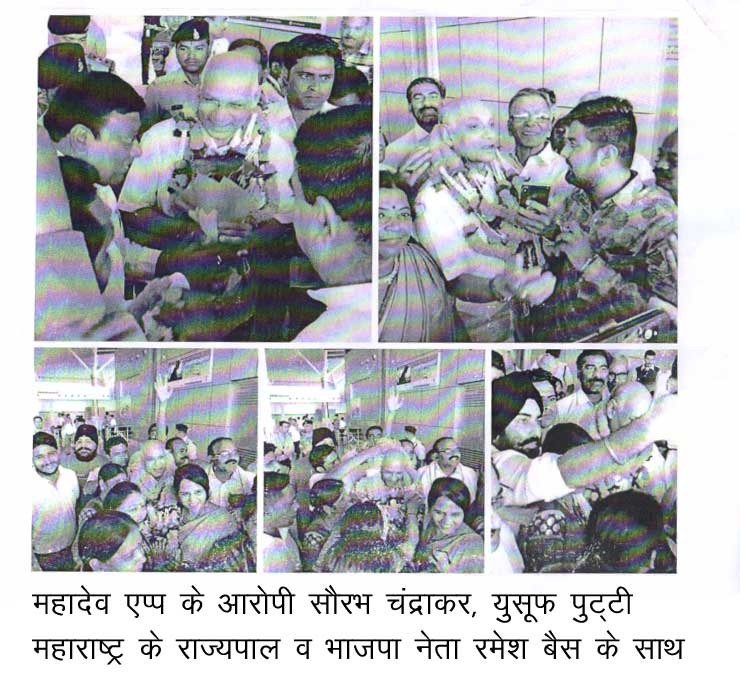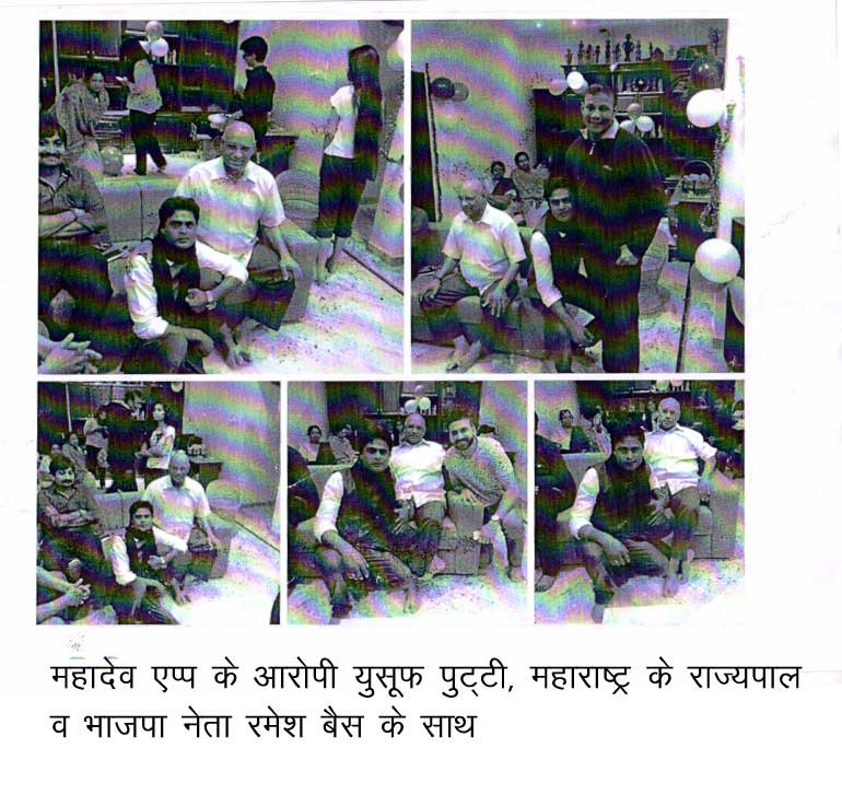 भाजपा के वरिष्ठ नेता महाराष्ट्र के राज्यपाल रमेश बैस के साथ महादेव एप्प के सरगना सौरभ चंद्राकर और युसूफ पुट्टी जो कि महादेव एप्प का एक सहयोगी है जिसके खिलाफ एफआईआर भी हुई उसकी तस्वीर रमेश बैस के साथ है। युसूफ पुट्टी के साथ दुबई कौन से भाजपा नेता गये थे इसकी जांच होनी चाहिये?