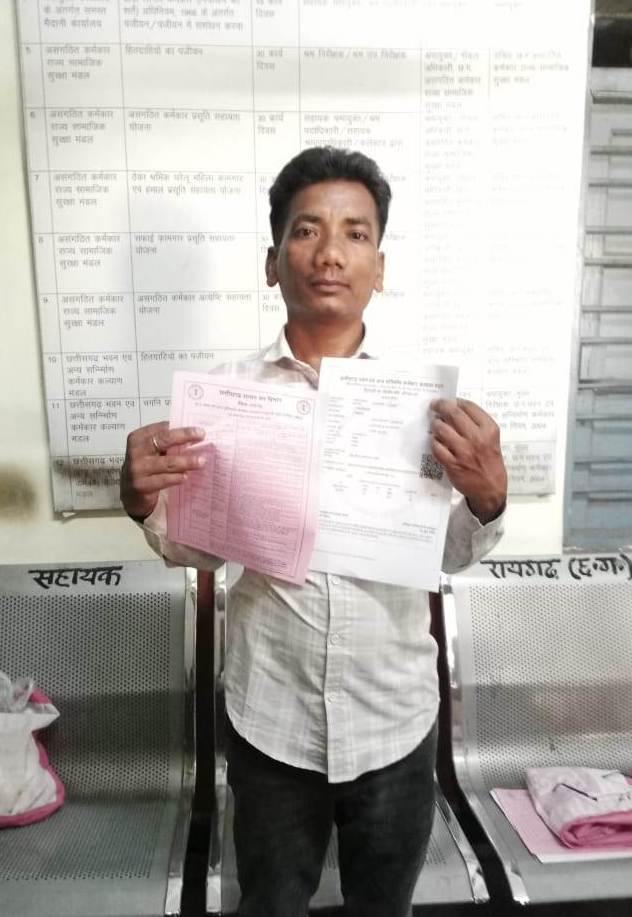 सुशासन तिहार के अंतर्गत रायगढ़ जिले में भी आवेदनों का गुणवत्तापूर्ण निराकरण किया जा रहा है। ननसिया के श्री सुन्दरलाल उरांव तथा श्रीमती अनीता बाई ने श्रमिक पंजीयन और श्रम विभाग की योजनाओं का लाभ प्राप्त करने के लिए आवेदन दिया था। इसका तत्काल निराकरण करते हुए उनका पंजीयन कर श्रमिक कार्ड प्रदान किया गया। साथ ही उन्हें श्रम विभाग की विभिन्न योजनाओं और पात्रता संबंधी जानकारी भी दी गई जिससे वे योजनाओं का लाभ ले सकें। श्रम विभाग द्वारा महतारी जतन, छात्रवृत्ति, नोनी सशक्तिकरण, मृत्यु पर परिवार को सहायता, सियान योजना, पेंशन योजना, साइकिल, सिलाई मशीन तथा अन्य उपकरण प्रदान करने से संबंधित अनेक योजनाएं संचालित की जा रही हैं। श्रमिक पंजीयन कराकर पात्र हितग्राही इनका लाभ ले सकते हैं।