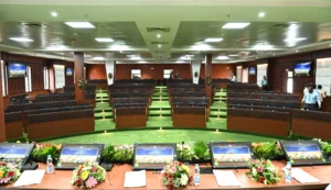 रायपुर। CM विष्णुदेव साय ने आज नवा रायपुर स्थित मंत्रालय महानदी भवन के सेक्रेटरी ब्लॉक के पंचम तल पर निर्मित नवीन सभागार का लोकार्पण किया। 13.90 करोड़ रुपये की कुल लागत से निर्मित यह भव्य सभागार सभी अत्याधुनिक सुविधाओं से युक्त है। 6450 वर्गफुट क्षेत्र में बने इस कॉन्फ्रेंस हॉल की बैठक क्षमता 185 सीटों की है। सभागार आंतरिक विद्युतीकरण, अग्निशमन व्यवस्था, वातानुकूलन, ऑडियो-विजुअल प्रणाली, आंतरिक साज-सज्जा तथा फर्नीचर सहित सभी आवश्यक सुविधाओं से सुसज्जित है।