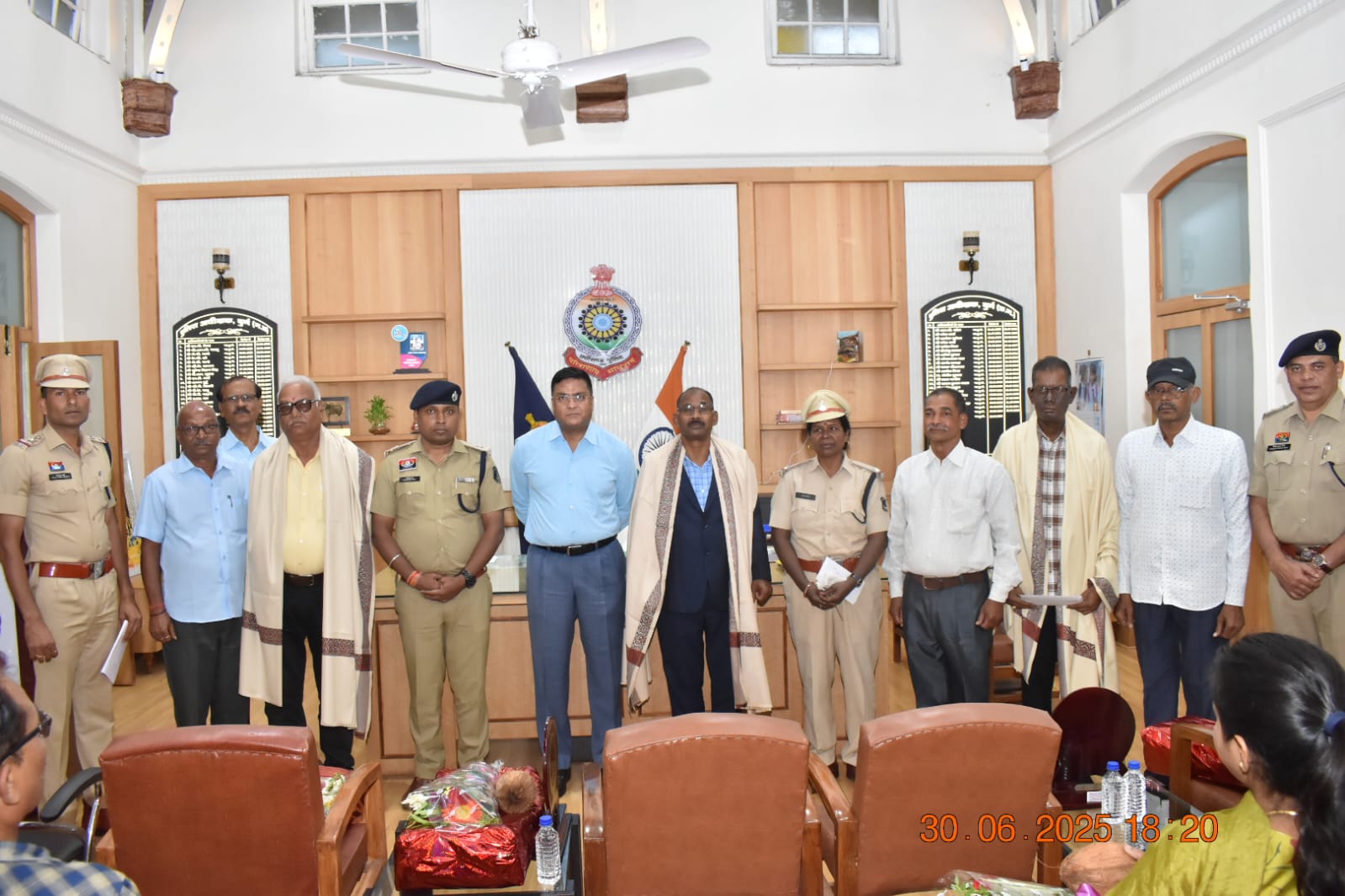 हम सभी एक परिवार के रूप में है और जब कभी भी पुलिस विभाग से सेवानिवृत्त हो रहे अधिकारी/कर्मचारियों को हमारी आवश्यकता होगी हम सदैव मदद् के लिए तत्पर रहेगें। वरिष्ठ पुलिस अधीक्षक, दुर्ग विजय अग्रवाल, भापुसे, द्वारा सेवानिवृत्त हो रहे सभी अधिकारी/कर्मचारियों एवं उनके परिवार के सदस्यों का शाल एवं श्रीफल भेंट कर सम्मानित किया गया और उनके उज्जवल भविष्य की कामना की गई। उक्त कार्यक्रम के दौरान अभिषेक झा अतिरिक्त पुलिस अधीक्षक (ग्रामीण) जिला-दुर्ग, विनोद मिंज उप पुलिस अधीक्षक मुख्यालय, नीलकंठ वर्मा रक्षित निरीक्षक दुर्ग एवं वरिष्ठ पुलिस अधीक्षक कार्यालय दुर्ग के समस्त अधिकारी/कर्मचारी उपस्थित थे।