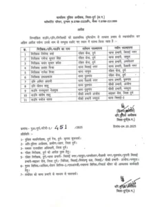 दुर्ग। जिले में रविवार (5 अक्टूबर) रात जिले के सीनियर एसपी ने बड़ी प्रशासनिक सर्जरी करते हुए 5 थानों के टीआई को बदल दिया है। वहीं दो पुलिस चौकी के प्रभारी भी बदले गए हैं।