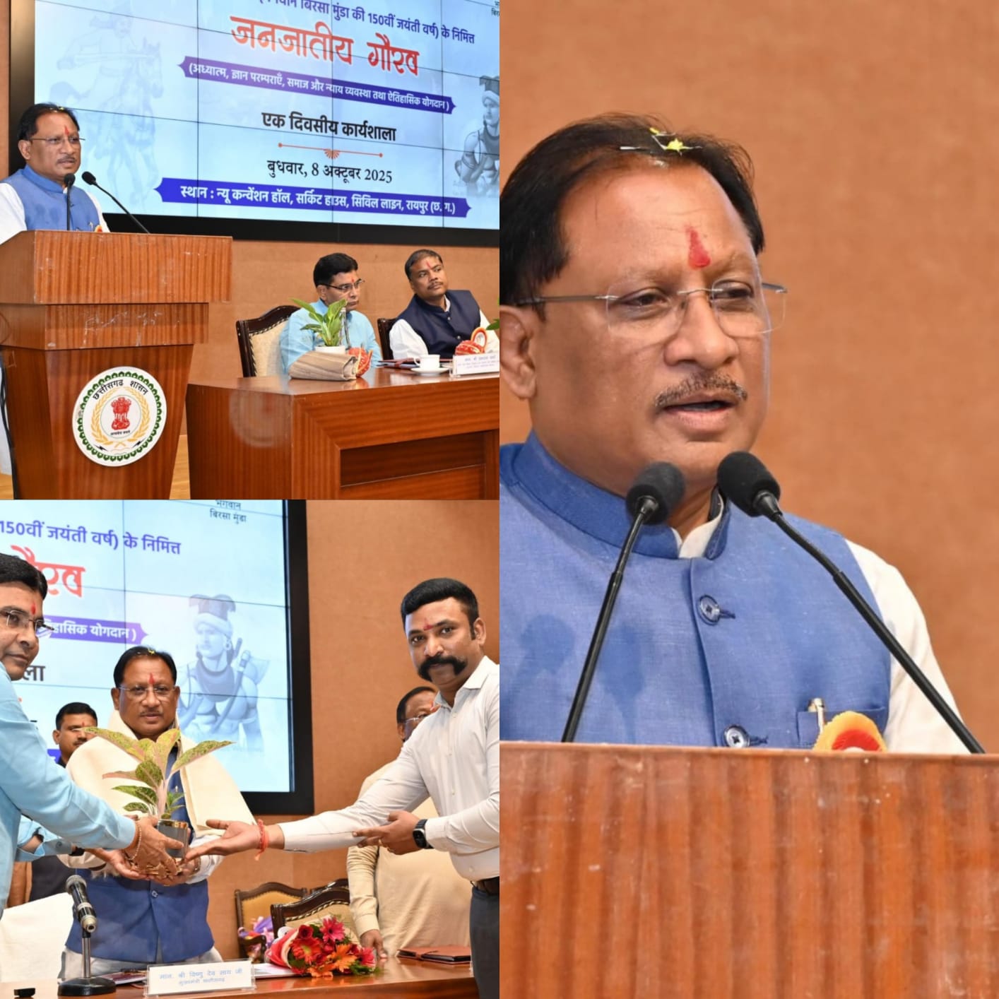 मुख्यमंत्री साय ने कहा कि गत वर्ष भी इसी सभागार में जनजातीय गौरव दिवस की कार्यशाला सफलतापूर्वक आयोजित हुई थी, जिसे पूरे प्रदेश में उत्साहपूर्वक मनाया गया। जशपुर में आयोजित 10 किलोमीटर लंबी पदयात्रा में केंद्रीय मंत्री मनसुख मांडविया शामिल हुए थे, जिसमें जनजातीय समाज की पारंपरिक वेशभूषा, व्यंजन, आभूषण और संस्कृति का आकर्षक प्रदर्शन किया गया था। प्रधानमंत्री नरेंद्र मोदी ने इस पहल की सराहना करते हुए कहा था कि ऐसे आयोजन देशभर में प्रतिवर्ष आयोजित किए जाने चाहिए।