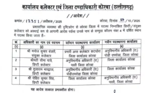 कोरबा। प्रशासनिक कामकाज में कसावट लाने के मद्देनजर जिले के कलेक्टर अजीत वसंत ने जिले के तीन डिप्टी कलेक्टर और एक संयुक्त कलेक्टर के पदस्थापना स्थल में बदलाव किया है। इस फेरबदल के संबंध में जिला मुख्यालय की तरफ से आदेश जारी कर दिया गया है। सूची में मनोज कुमार बंजारे संयुक्त कलेक्टर को प्रभारी उपर कलेक्टर कटघोरा से अनुविभागीय अधिकारी पोड़ी उपरोड़ा भेजा गया है।