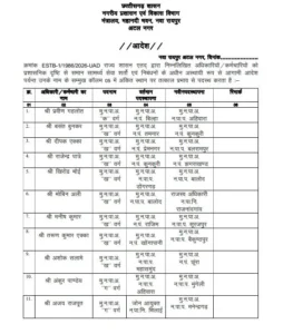 रायपुर। छत्तीसगढ़ में एक बार फिर बड़ा प्रशासनिक फेरबदल किया गया है। नगरीय प्रशासन एवं विकास विभाग ने राज्यभर में प्रशासनिक कसावट लाने और नगरीय निकायों की कार्यप्रणाली को मजबूत करने के उद्देश्य से 20 मुख्य नगर पालिका अधिकारियों (CMO) सहित कुल 37 अधिकारियों और कर्मचारियों के तबादले का आदेश जारी किया है।