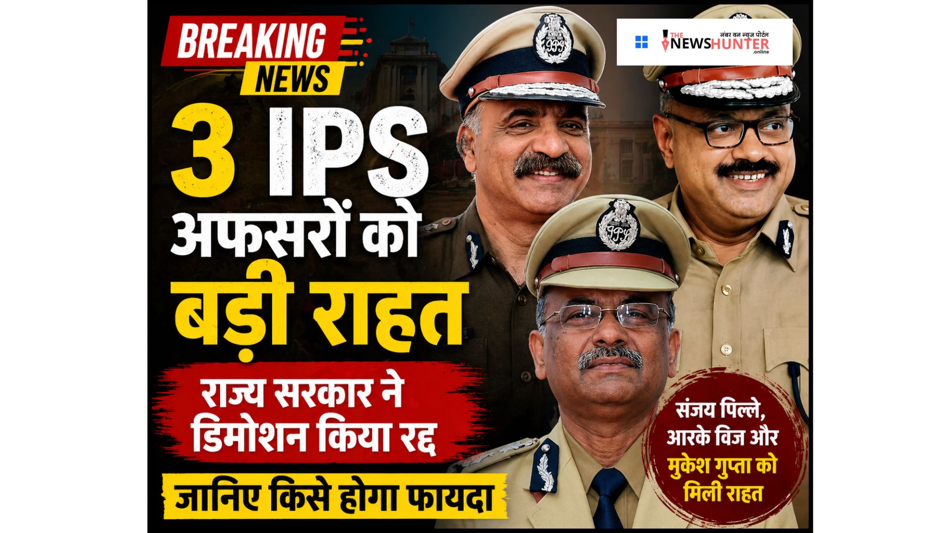 इस फैसले से संजय पिल्ले, आरके विज और मुकेश गुप्ता को बड़ी राहत मिली है। विशेष रूप से पूर्व IPS मुकेश गुप्ता को इस निर्णय से बड़ा लाभ होगा, क्योंकि उन्हें अब पद और उससे जुड़े वित्तीय लाभ, जैसे पेंशन और ग्रेच्युटी का फायदा मिलेगा।