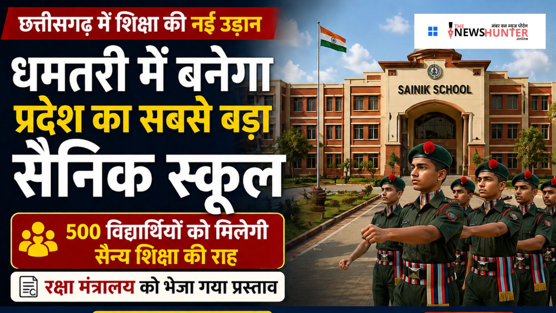 रायपुर। छत्तीसगढ़ के धमतरी जिले को जल्द ही एक बड़ी सौगात मिलने वाली है। यहां प्रदेश का सबसे बड़ा सैनिक स्कूल स्थापित करने की तैयारी शुरू हो गई है। राज्य सरकार ने इस महत्वाकांक्षी परियोजना का प्रस्ताव मंजूर कर केंद्र के रक्षा मंत्रालय को भेज दिया है।