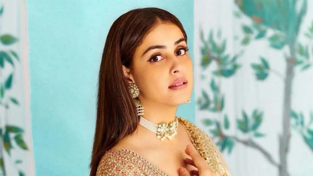 जेनेलिया ने इस लुक के साथ ट्रेडिशनल गहनों को बेहद खूबसूरती से कैरी किया हुआ है। उनके गले में कुंदन चोकर हार है, कानों में भारी झुमके हैं, और हाथों में कंगनों की भरमार है। बालों को उन्होंने हल्का कर्ल कर करके पीछे की ओर बांधा हुआ है, और उसमें सफेद फूलों का एक छोटा सा गजरा है, जो उनके पूरे लुक में चार चांद लगा रहा है।