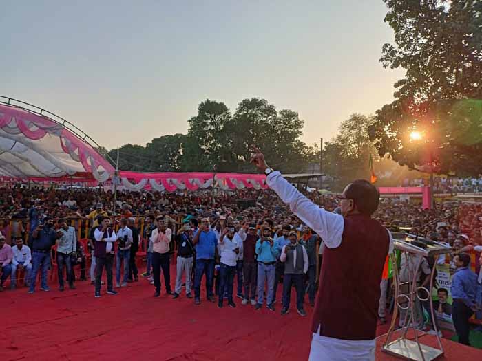 मुख्यमंत्री श्री शिवराज सिंह चौहान ने कहा कि प्रधानमंत्री नेरेन्द्र मोदी जी के कुशल नेतृत्व में देश आगे बढ़ रहा है, और डबल इंजन की सरकार में हमने मध्यप्रदेश को बड़े जतन से विकसित राज्यों की श्रेणी में लाकर खड़ा कर दिया है। उन्होंने जनता से अपील करते हुए कहा कि अब मध्यप्रदेश को विकास की राह पर और भी आगे ले जाना है, इसलिए प्रदेश में भाजपा के सभी उम्मीदवारों को भारी बहुमत से विजयी बनाना है और रिकॉर्ड मतों से मध्यप्रदेश में एक बार फिर भारतीय जनता पार्टी की सरकार बनाना है।