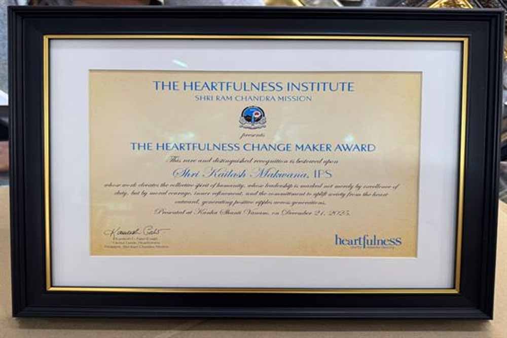 डीजीपी श्री कैलाश मकवाणा को प्रथम ‘हार्टफुलनेस चेंज मेकर अवार्ड’