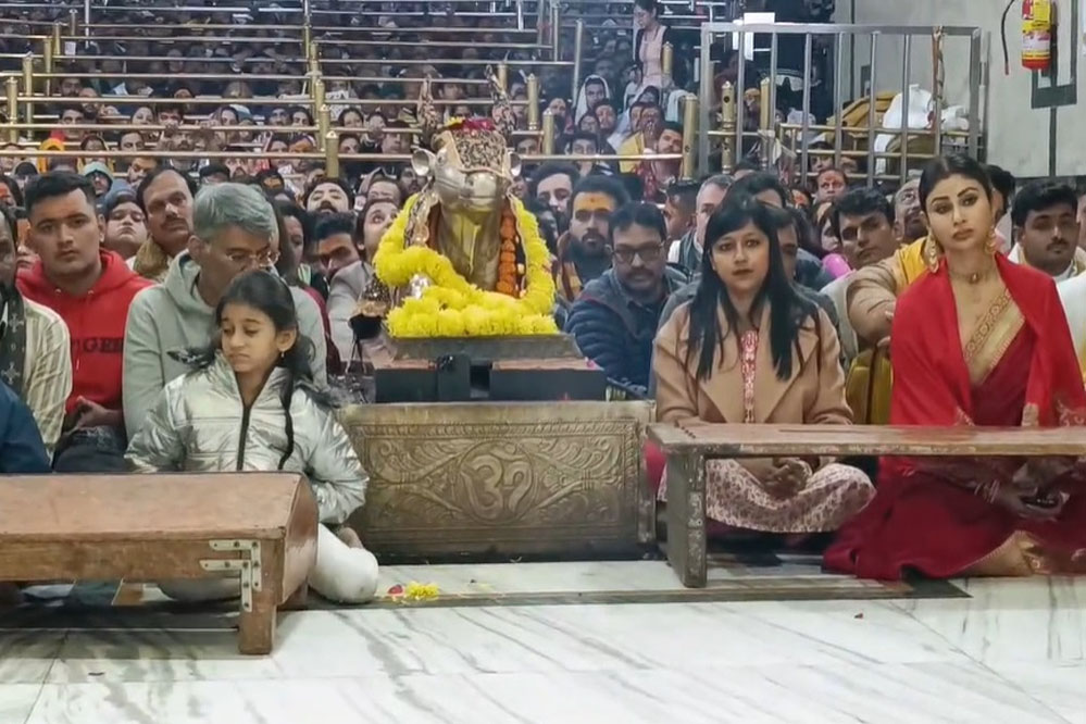 प्रसिद्ध फिल्म अभिनेत्री मौनी रॉय अपने पति सूरज नांबियार और परिवार के साथ शनिवार सुबह महाकालेश्वर मंदिर पहुंची। उन्होंने तड़के चार बजे सुबह होने वाली भस्म आरती में हिस्सा लिया। मौनी राय ने परिवार के साथ करीब दो घंटे तक नंदी हाल में बैठ कर भगवान महाकाल की भस्म आरती का दर्शन किए। इस दौरान मौनी राय महाकाल की भक्ति में लीन नजर आई।