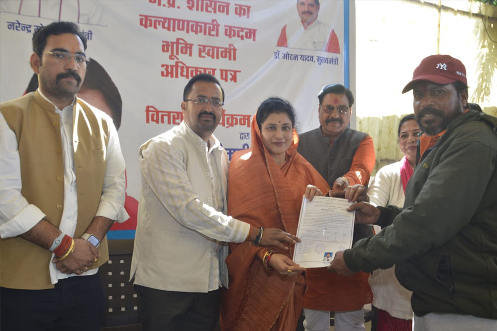 भूमि स्वामी अधिकार-पत्र देकर बनाया मालिक : राज्य मंत्री श्रीमती गौर