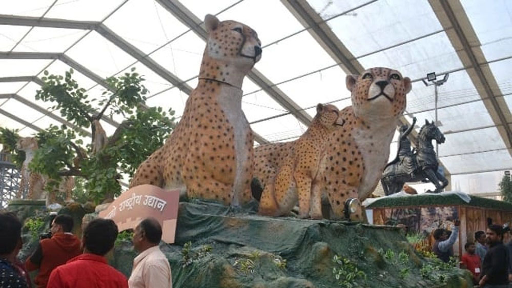 झांकी में कूनो और चीतों की झलक- गणतंत्र दिवस पर मध्यप्रदेश की झाँकी में भारत में चीतों के सफल पुनर्स्थापन को दर्शाया गया है। झांकी के अग्रभाग में कूनो राष्ट्रीय उद्यान के वयस्क चीतों का जोड़ा और कूनो में जन्मे नन्हें चीता शावकों को दर्शाया गया है। झाँकी के मध्य भाग में बहती हुई कूनो नदी और इसके आसपास राष्ट्रीय उद्यान के वनावरण एवं प्राकृतिक आवास में विचरण करते हुए वन्य-जीव, जिनमें हिरण, बंदर, पक्षी और चीते उनकी बढ़ती हुई संख्या के साथ जैव-विविधता के लिये एक आदर्श के रूप में कूनो अभयारण्य को दर्शाया गया है।