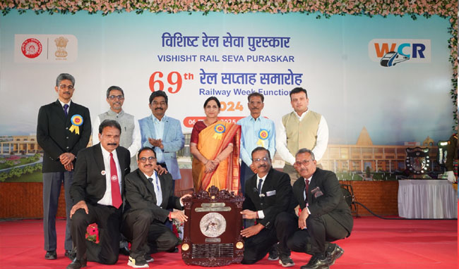 पश्चिम मध्य रेलवे के 69वें रेल सप्ताह समारोह के अंतर्गत महाप्रबंधक श्रीमती शोभना बंदोपाध्याय महोदया द्वारा विशिष्ट रेल सेवा पुरस्कार आवंटित किये गये| इस अवसर पर जबलपुर में आयोजित भव्य समारोह में रेल कर्मचारियों एवं भोपाल, जबलपुर और कोटा मंडल के विभिन्न विभागों को उनके उत्कृष्ट कार्यों के लिए पुरस्कृत किया गया। वित्तीय वर्ष 2023-24 के लिए भोपाल मंडल को कुल 6 दक्षता शील्ड प्राप्त हुई हैं, जो मंडल की उत्कृष्ट सेवाओं और प्रयासों को दर्शाती हैं।