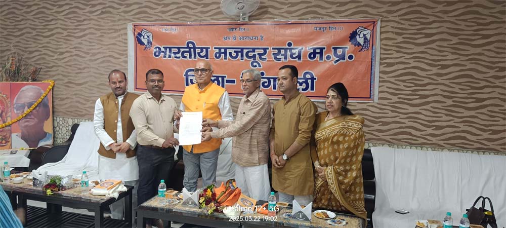 क्षेत्र के लोकसभा सांसद डॉ राजेश मिश्रा भारतीय मजदूर संघ की एक औपचारिक बैठक में सम्मिलित हुए। सांसद जी के साथ जिलाध्यक्ष सुंदरलाल शाह तथा मंडल अध्यक्ष जयन्त संदीप झा भी इस बैठक में मंचासीन रहे। यह बैठक दुधीचुआ परियोजना के सूर्य किरण में सम्पन्न हुई तथा यह महत्वपूर्ण बैठक भारतीय मजदूर संघ के जिलाध्यक्ष कमलेंद्र शेखर शर्मा की अध्यक्षता में सम्पन्न हुई। सांसद जी के निर्वाचन तथा जिलाध्यक्ष सुंदरलाल शाह के जिलाध्यक्ष नियुक्त होने के पश्चात भारतीय मजदूर संघ के साथ यह प्रथम औपचारिक बैठक थी जिसमें कई महत्वपूर्ण विषयों पर चर्चा हुई।