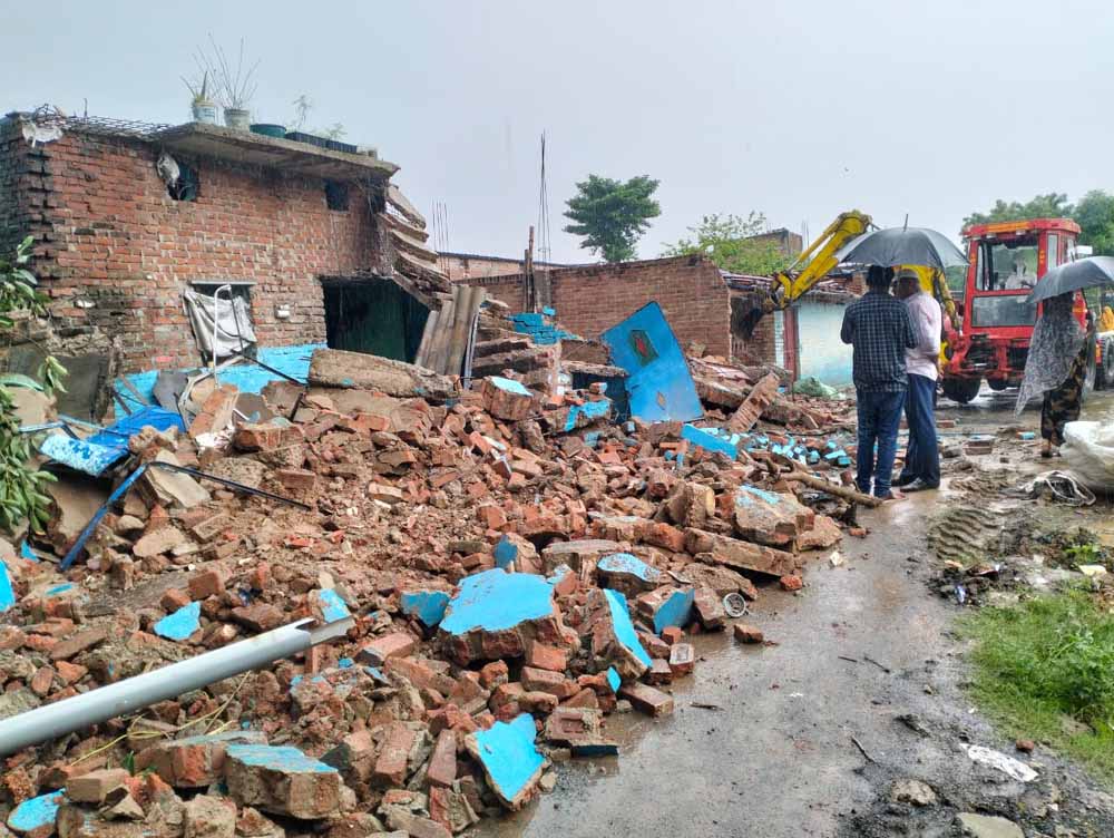 केशवाही क्षेत्र के महरान टोला में जवाहर महरा और उनकी पत्नी की मृत्यु भारी बरसात के कारण मकान की दीवार के नीचे दबने से हो गई है। दो लोगों की दर्दनाक मौत के चलते ग्रामीणों में आक्रोश है। यह घटना मझौली क्षेत्र के महरान टोला गांव में शनिवार की सुबह हुई है। बताया जा रहा है कि मकान की दीवार जर्जर थी जिसके कारण वह गिर गई और इस घटना में जवाहरलाल महरा और उसकी पत्नी डोमनियां महरा की दर्दनाक मौत हो गई।
