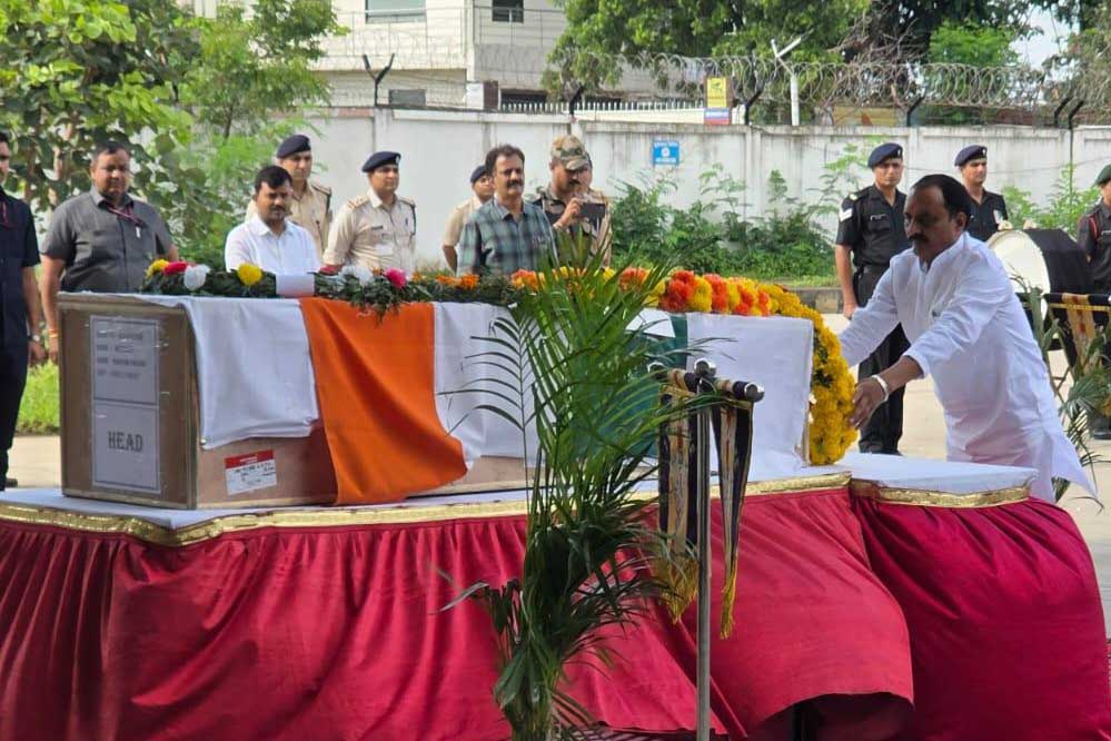 भोपाल एयरपोर्ट पर नवीन एवं नवकरणीय ऊर्जा मंत्री श्री राकेश शुक्ला तथा अपर जिला दण्डाधिकारी श्री अंकुर मेश्राम ने पार्थिव देह पर पुष्पचक्र अर्पित कर उन्हें श्रद्धांजलि दी और भारत माँ के इस वीर सपूत को नमन किया।