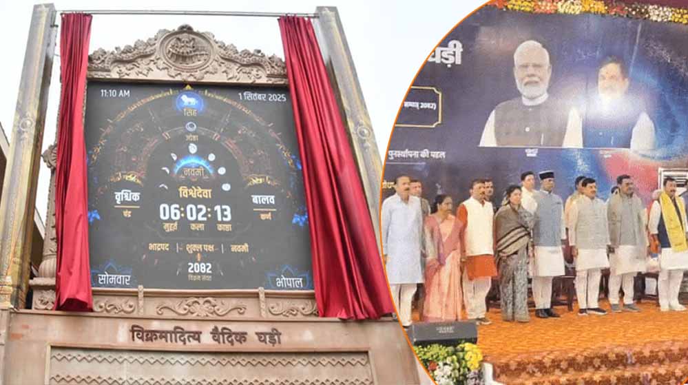 राजधानी भोपाल में मुख्यमंत्री डॉ. मोहन यादव ने सोमवार को मुख्यमंत्री निवास पर विक्रमादित्य वैदिक घड़ी का लोकार्पण और ऐप लॉन्च किया। इस घड़ी की खासियत है कि यह सूर्य की गति के साथ चलती है और सूर्योदय से नए दिन की शुरुआत करती है। इस मौके पर शौर्य स्मारक से युवाओं का बाइक व पैदल मार्च निकाला गया, जो मुख्यमंत्री निवास तक पहुंचा। वहां “विक्रमादित्य वैदिक घड़ी : भारत के समय की पुनर्स्थापना की पहल” विषय पर युवा संवाद हुआ, जिसमें मुख्यमंत्री ने युवाओं से सीधा संवाद किया। मुख्यमंत्री डॉ. मोहन यादव ने कहा कि यह केवल घड़ी नहीं, बल्कि भारत की गौरवशाली परंपरा और वैज्ञानिक दृष्टि का आधुनिक स्वरूप है। वैदिक घड़ी हमारी संस्कृति को वैश्विक मंच पर नई पहचान दिलाएगी। कार्यक्रम में मुख्यमंत्री ने विक्रमादित्य वैदिक घड़ी से जुड़े मोबाइल ऐप का भी लोकार्पण किया। कार्यक्रम में मंत्री विश्वास सारंग ने कहा- 'अगर हम मंत्रियों को एक-एक घड़ी भेंट कर दी जाए तो हम भी अपने घरों में इसे स्थापित कर सकें।'
