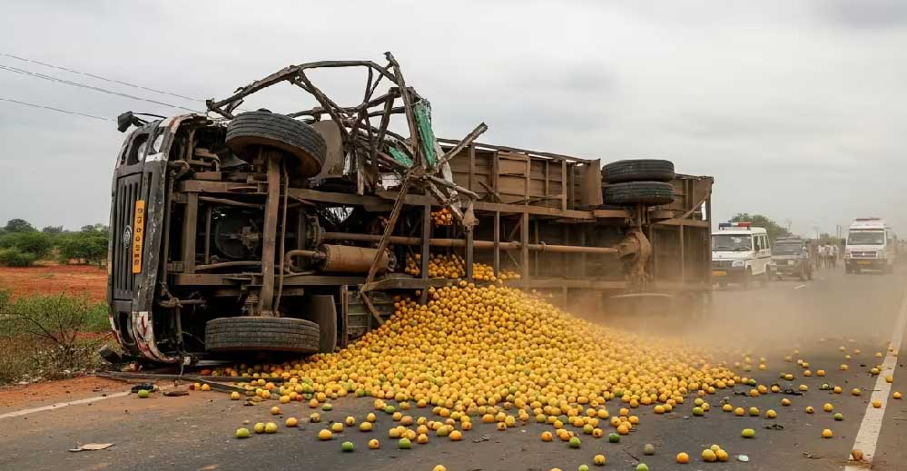 आंध्र प्रदेश में भीषण हादसा: आमों से लदा ट्रक पलटा, 9 मजदूरों की मौत, 10 घायल