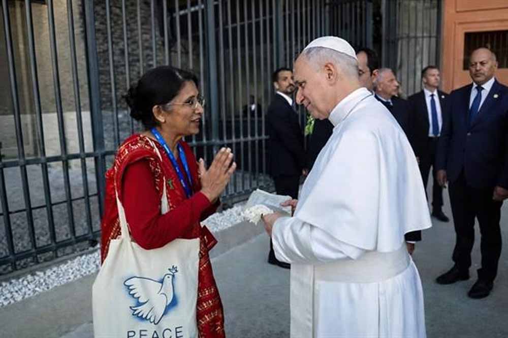 सृजन को सु अनुराधा शंकर से.नि. आईपीएस जो कि गांधी पीस फाउंडेशन से संबद्ध हैं के द्वारा वेटिकन सिटी के धर्मगुरू पोप तथा अन्य को रोम के एक कार्यक्रम में 26 अक्टूबर 2025 को भेंट किया गया। इस कल्पना को साकार करने में नर्मदापुरम की महिला उद्यमी रत्नम  और राकेश ने अपना योगदान दिया है।