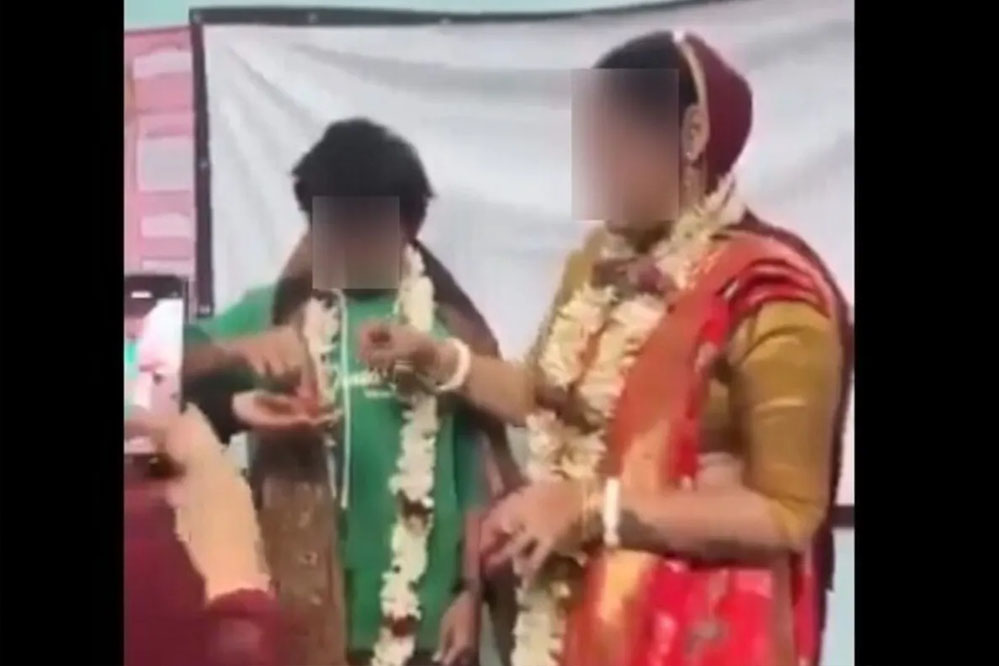 वीडियो में दुल्हन की तरह सजी प्रोफेसर और प्रथम वर्ष के छात्र को कक्षा में 'सिंदूर दान' और 'माला बदल' (जयमाला) समेत हिंदू बंगाली शादी के विभिन्न रीति-रिवाज निभाते देखा जा सकता है।