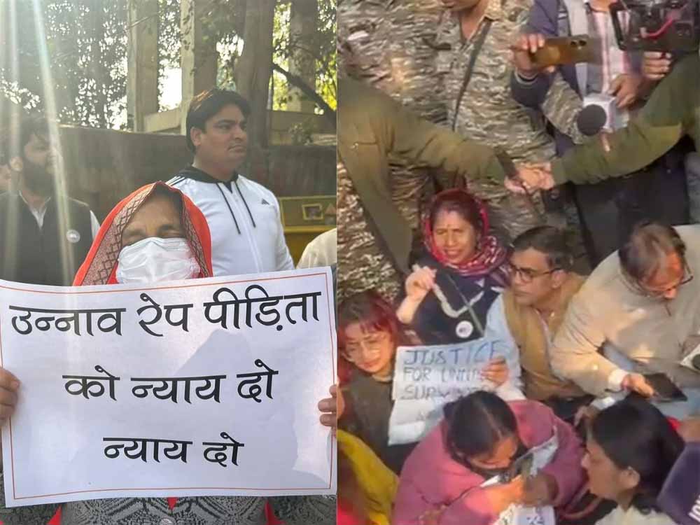दिल्ली पुलिस ने प्रदर्शन उग्र होते देख पीड़िता की मां को प्रदर्शन स्थल से इधर उधर भी भेजा गया। इस दौरान कुछ लोग हाथों में तख्तियां लिए कुलदीप सेंगर के समर्थन में पहुंचे हैं। भीड़ से एक शख्स को भाजपा जिंदाबाद के नारे लगाते भी देखा गया है। प्रदर्शन स्थल पर पुलिस और मीडिया का जमावड़ा भी देखा जा रहा है।