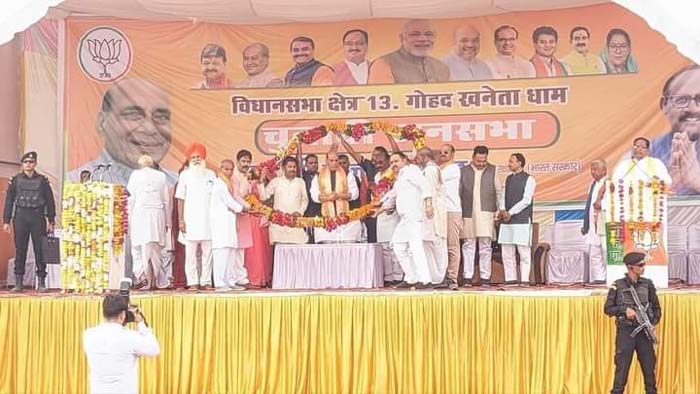 गोहद की जनसभा में सांसद श्रीमती संध्या राय, जिला पंचायत अध्यक्ष श्रीमती कामना सुनील भदौरिया, श्रीमती सुमन तोमर, पूर्व विधायक श्रीराम जाटव, जिला अध्यक्ष देवेंद्र नरवरिया, जयप्रकाश राजोरिया, रामबाबू उपाध्याय, कमल सिह तोमर, अवधेश सिंह कुशवाह, अविनाश भटेले, गुड्डू भटेले, संग्राम सिह तोमर, नरेंद्र सिंह तोमर, सरदार रंजीत सिंह मंचासीन थे।