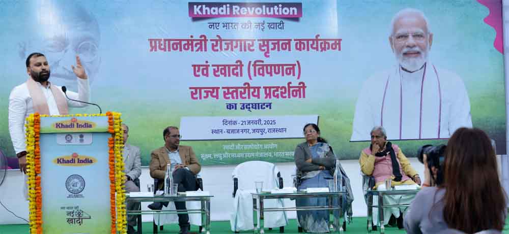 खादी और ग्रामोद्योग आयोग द्वारा आयोजित प्रधानमंत्री रोजगार सृजन कार्यक्रम एवं खादी (विपणन) राज्य स्तरीय प्रदर्शनी ‘खादी फेस्ट’ का उद्घाटन जयपुर सांसद श्रीमती मंजू शर्मा और खादी और ग्रामोद्योग आयोग के अध्यक्ष श्री मनोज कुमार ने मंगलवार को किया।