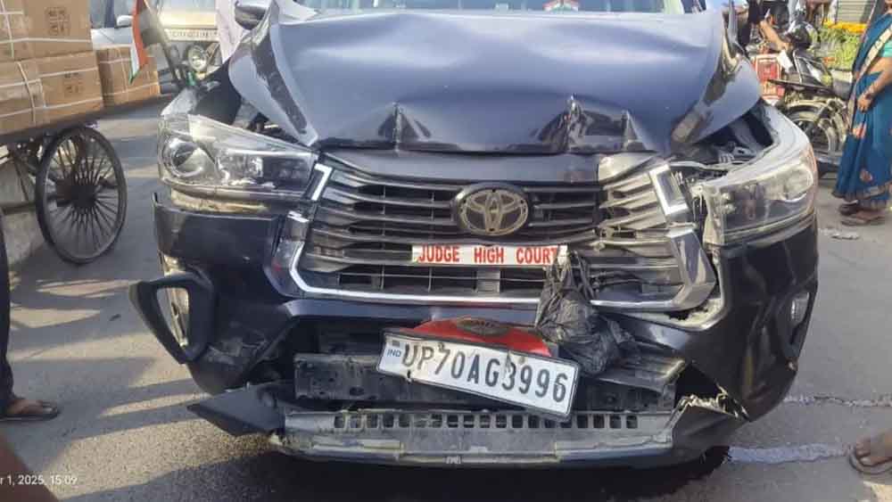 उच्च न्यायालय इलाहाबाद के न्यायमूर्ति राजीव कुमार सिंह की कार शनिवार देवरिया में सिविल लाइंस रोड पर पुलिस स्कॉट वाहन से अचानक टकरा गई। संयोग रहा कि किसी को चोट नहीं आई है। न्यायमूर्ति सहित कार में सवार सभी लोग बाल बाल बच गए।