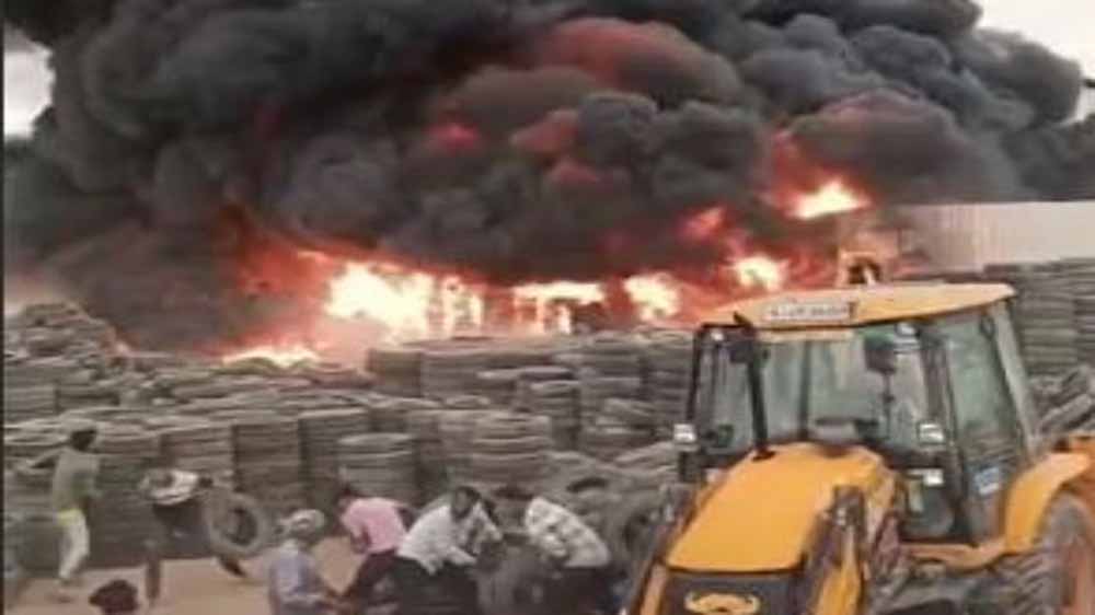 जिले के नोहर कस्बे में गुरुवार शाम एक टायर फैक्ट्री में भीषण आग लग गई, जिससे फैक्ट्री की सभी मशीनें और टायर जलकर राख हो गए। आग की लपटें इतनी तेज थीं कि कई किलोमीटर दूर से दिखाई दे रही थीं।