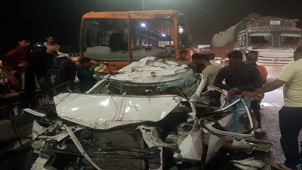 इस दौरान मेटाडोर के चालक ने बाहर निकलकर खुद को बचाया। वहीं बस का चालक भी मौके से भाग निकला। हादसे के बाद हाईवे पर जाम लग गया। सूचना पर सिकंदरा पुलिस मौके पर पहुंच गई। कार बुरी तरह बस और मेटाडोर के बीच फंस गई थी। इसे निकालने के लिए क्रेन को मौके पर बुलाना पड़ा।