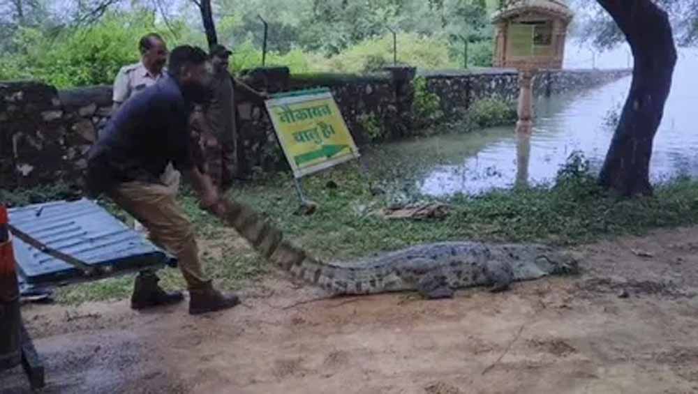 जिले के गंगरार उपखंड क्षेत्र के सुवानियां गांव के राजकीय विद्यालय में मंगलवार दोपहर करीब 10 फीट लंबा मगरमच्छ घुस आया। सूचना मिलने पर वन विभाग और वन्यजीव प्रेमियों की टीम मौके पर पहुंची और रेस्क्यू ऑपरेशन शुरू किया। हालांकि स्कूल परिसर में दो से तीन फीट ऊंची घास होने के कारण अभियान में काफी दिक्कत आई। करीब दो से ढाई घंटे की मशक्कत के बाद मगरमच्छ को सुरक्षित पकड़ा गया और बस्सी बांध में छोड़ दिया गया। गनीमत रही कि उस समय स्कूल में छुट्टी हो चुकी थी, वरना बड़ा हादसा हो सकता था।