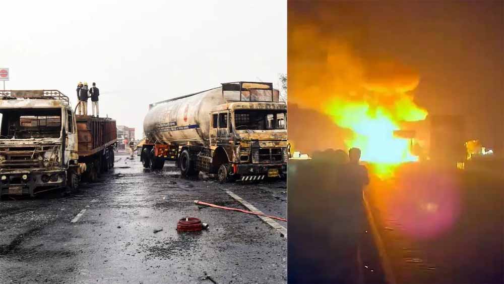 घटना रात करीब 10 बजे हुई, जिससे हाईवे पर अफरा-तफरी मच गई। प्रत्यक्षदर्शियों के अनुसार, टैंकर चालक ने आरटीओ वाहन को देखकर अचानक ढाबे की ओर मोड़ काटी और सामने खड़े गैस सिलेंडर से लदे ट्रक से भिड़ गया। हादसे में टैंकर का चालक जिंदा जल गया। वहीं, आसपास खड़े पांच अन्य वाहन भी आग की चपेट में आ गए। दमकल की 12 गाड़ियों ने करीब 3 घंटे की मशक्कत के बाद आग पर काबू पाया। ट्रक में कुल 330 सिलेंडर लदे हुए थे, जिनमें से दो तिहाई से ज्यादा सिलेंडर फट गए। हाईवे पर दोनों ओर ट्रैफिक रोकना पड़ा, जिसे बुधवार सुबह करीब 4:30 बजे दोबारा खोला गया।