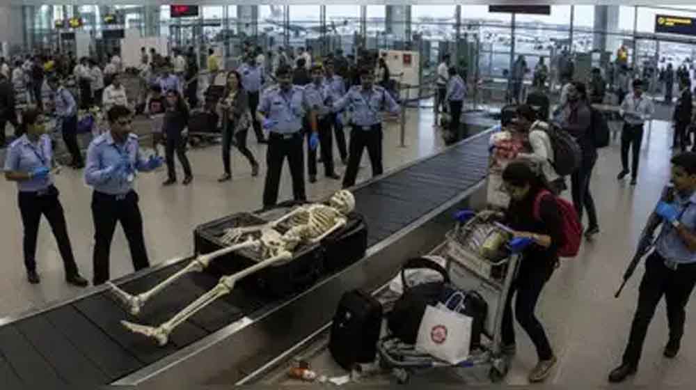 दिल्ली एयरपोर्ट के टर्मिनल 3 पर उस समय अफरा-तफरी मच गई, जब जांच के दौरान मानव कंकाल जैसी दिखने वाली वस्तु बरामद हुई। दिल्ली पुलिस ने कंकाल को फोरेंसिक जांच के लिए भेज दिया है। शुरुआती जांच में पता चला कि यह एक डेमो कंकाल है, जिसका उपयोग मेडिकल छात्र करते हैं।
