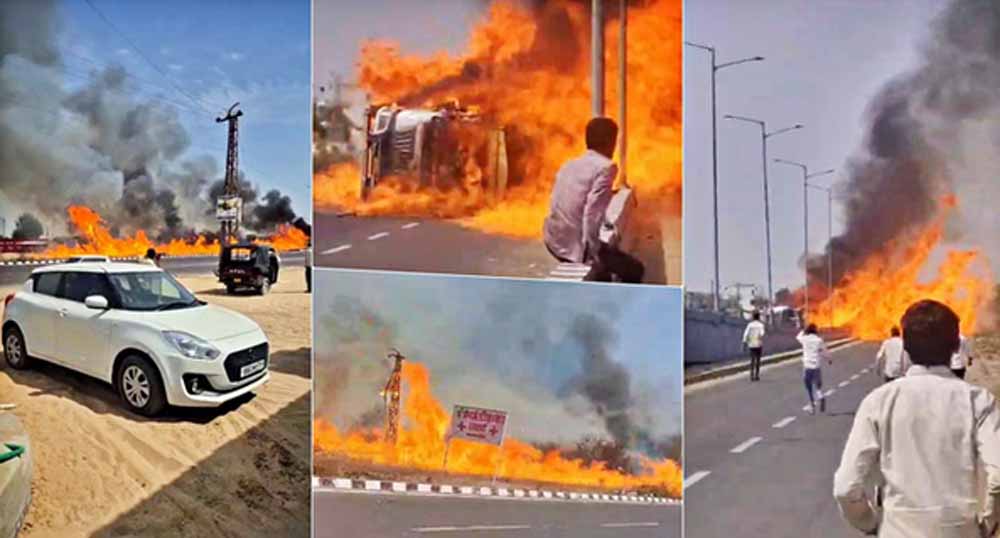 जानकारी के अनुसार, टैंकर बाड़मेर से सांचौर की ओर जा रहा था। यह हादसा जैसलमेर-जामनगर मार्ग पर सिंवाड़ा ओवरब्रिज के पास हुआ, जहां टैंकर अनियंत्रित होकर पलट गया। टैंकर के पलटते ही उसमें भरा ज्वलनशील पदार्थ सड़क पर फैल गया और कुछ ही क्षणों में आग ने विकराल रूप धारण कर लिया।