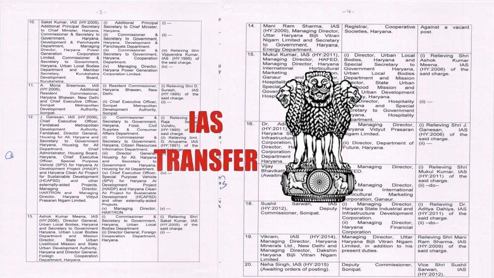 हरियाणा में प्रशासनिक स्तर पर बड़ा फेरबदल किया गया है। राज्यपाल के आदेशानुसार कई IAS अधिकारियों की पोस्टिंग और तबादले तत्काल प्रभाव से लागू कर दिए गए हैं। इस फैसले का उद्देश्य प्रशासनिक कार्यों को अधिक प्रभावी बनाना और विभिन्न विभागों में सुचारु संचालन सुनिश्चित करना बताया जा रहा है। नए आदेश के तहत अधिकारियों को उनके नए पदों पर जल्द से जल्द कार्यभार संभालने के निर्देश दिए गए हैं।