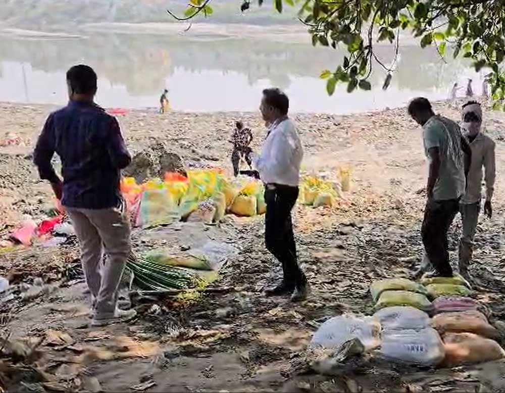 यमुना किनारे कूड़े में लगाई आग