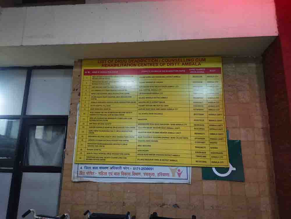 स्वास्थ्य विभाग की ओर से 15 नशा मुक्ति केंद्रों व 5 पुनर्वास केंद्र की सूची जारी की गई है। इनमें अंबाला सिटी में 11, अंबाला कैंट के 6, बराड़ा के 2, नारायणगढ़ का 1 शामिल है। जिले में एक सरकारी नशा मुक्ति केंद्र अंबाला सिटी में है। जहां रोजाना की ओपीडी 100 तक पहुंच जाती है। सुबह के समय नशा मुक्ति केंद्र में डे केयर की सुविधा भी है।
