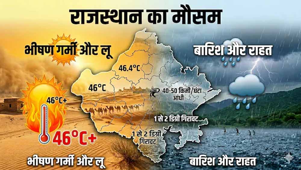 तपती गर्मी के बीच एक अच्छी खबर भी सामने आई है. मौसम केंद्र जयपुर के मुताबिक, एक नया पश्चिमी विक्षोभ सक्रिय हो रहा है और साथ ही बंगाल की खाड़ी से आने वाली पूर्वी हवाएं भी जोर पकड़ रही हैं. इस दोहरे प्रभाव के कारण अगले 3-4 दिनों में राजस्थान के मौसम में बड़ा बदलाव देखने को मिलेगा.