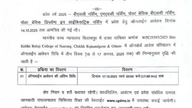 CG- नर्सिंग पाठ्यक्रमों में प्रवेश के लिए आवेदन की ऑनलाईन तिथि 3 दिन बढ़ी..