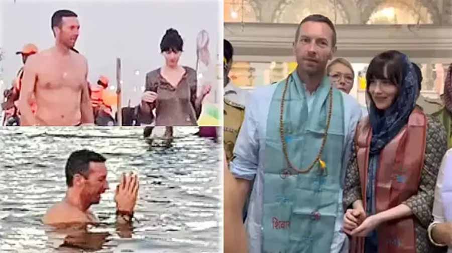 उत्तर प्रदेश के प्रयागराज में महाकुंभ 2025 जारी है। इसमें कई जाने-माने सेलेब्स भी जा रहे हैं और संगम में आस्था की डुबकी लगा रहे हैं। विदेश से अपने कॉन्सर्ट 'कोल्डप्ले' के लिए भारत आए क्रिस मार्टिन भी अपनी गर्लफ्रेंड डकोटा जॉनसन के साथ महाकुंभ पहुंचे। उन्होंने स्नान किया। हाथ जोड़कर नमस्कार किया। उनका वीडियो वायरल हो रहा है।
