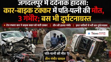 जगदलपुर में दर्दनाक हादसा: कार-बाइक टक्कर में पति-पत्नी की मौत, 3 गंभीर..बस दुर्घटना में कई घायल..