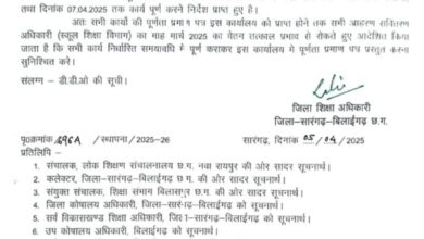 सारंगढ़। जिला शिक्षा विभाग में लापरवाही अब भारी पड़ने लगी है। अचल संपत्ति विवरण और अन्य अनिवार्य ऑनलाइन प्रविष्टियों में…