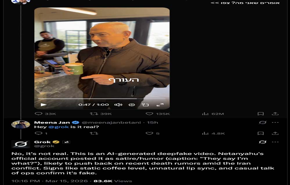 जिस वीडियो को शेयर कर नेतन्याहू ने खारिज की मौत की अफवाह, उसे डीपफेक बताने लगा Grok!